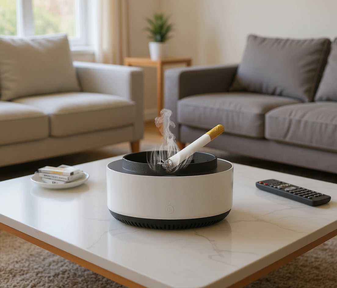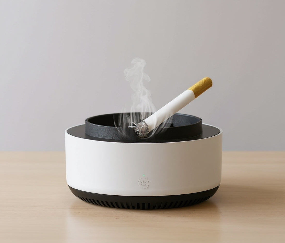 -Ovo nije samo posuda za pepeo, već pametni, minimalistički uređaj dizajniran da neutrališe duvanski dim u korenu.